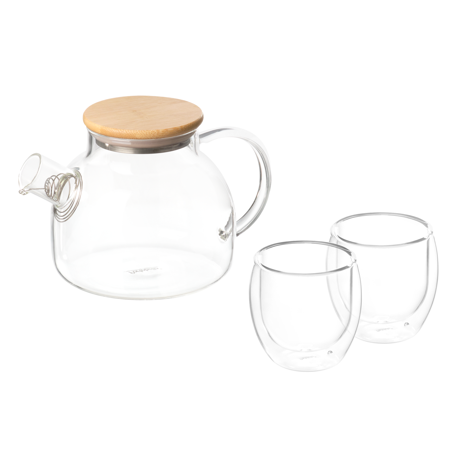 Чайник заварочный с бамбуковой крышкой объемом 800 мл подходит как для заваривания чая, так и для лимонадов или домашних морсов. Чашечки из стекла с двойными стенками будут гармонично дополнять вашу чайную церемонию.