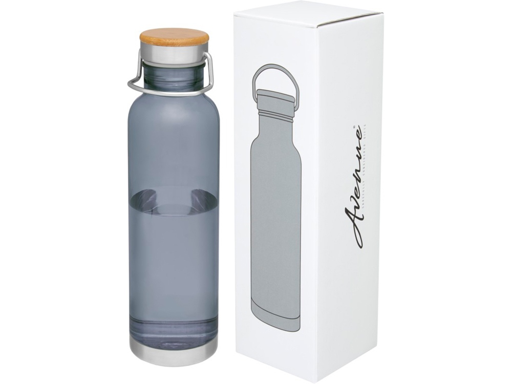 Спортивная бутылка с одинарными стенками из прочного материала от Tritan™. Устойчива к ударам, не пачкается и не пропускает запахи. Имеет съемную крышку с бамбуковым колпачком и ручку для удобной переноски. Без содержания БФА. Объем 800 мл. Представлена в подарочной коробке Avenue.