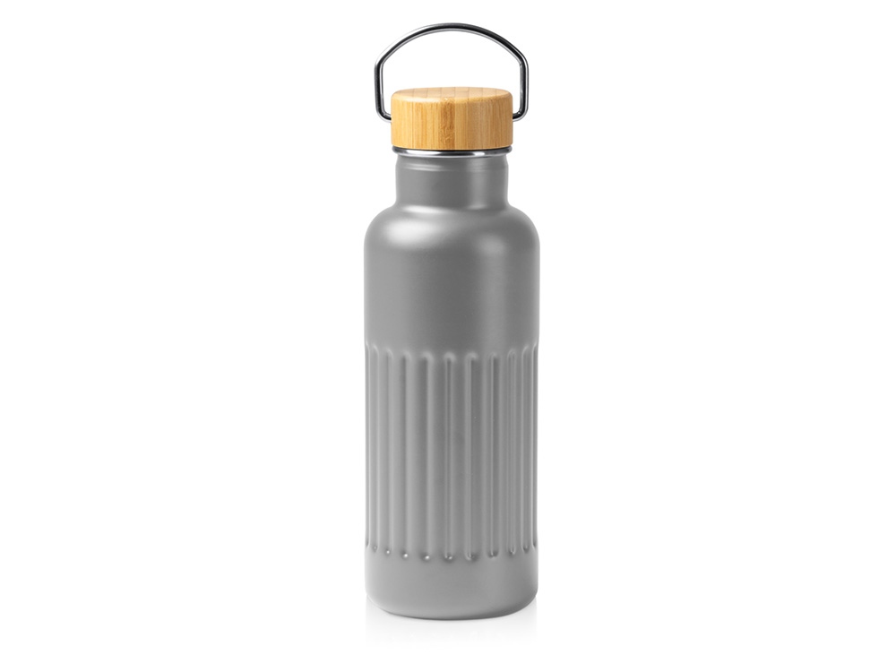 Термобутылка Нобук из переработанной нержавеющей стали, с бамбуковой крышкой, серый