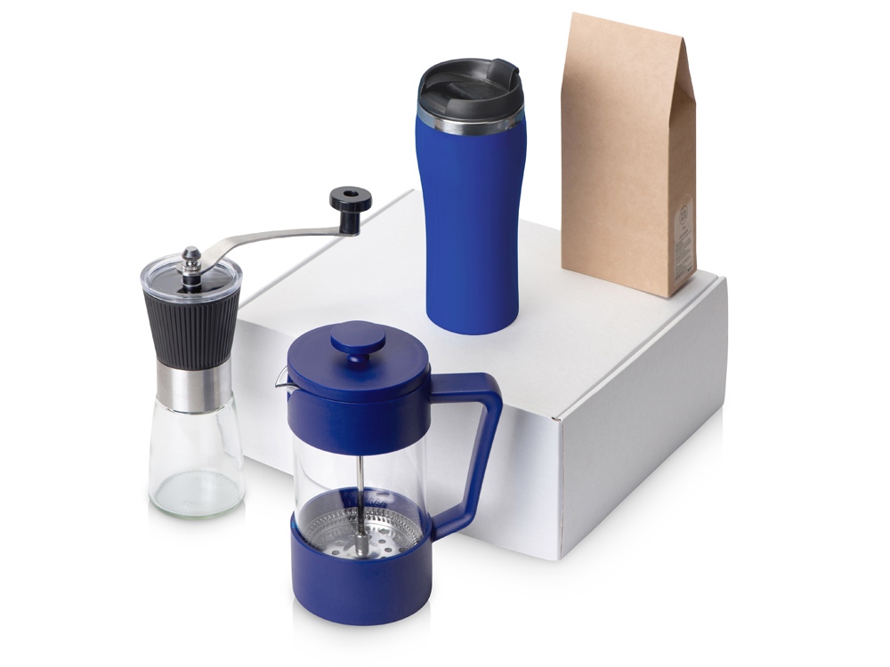 Подарочный набор с кофе, кружкой и френч-прессом Бодрое утро 2.0, синий
