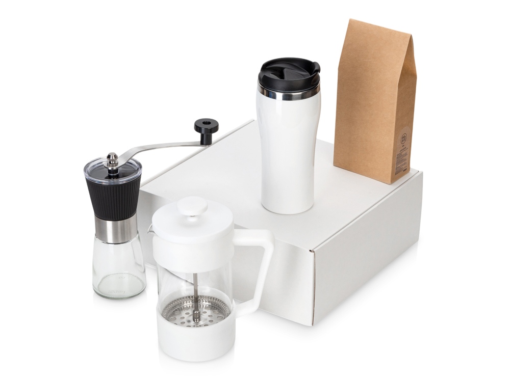 Подарочный набор с кофе, кружкой и френч-прессом Бодрое утро 2.0, белый