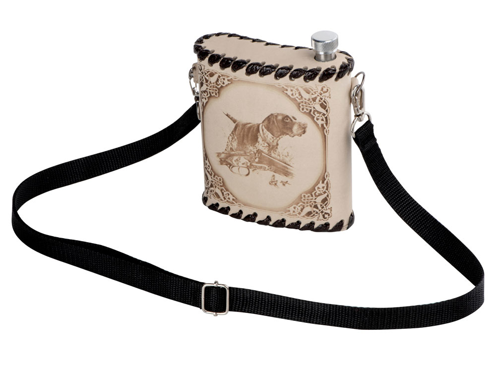 Фляга 1,5л в оплетке из натуральной кожи с нанесением рисунка методом художественного выжигания.