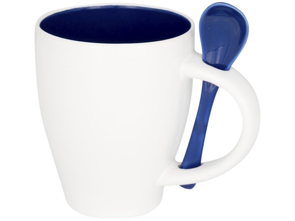 Чашка Nadu с ложкой. Керамическая кружка с модным дизайном и присоединенным держателем для ложки в ручке. Внутренняя часть кружки окрашена тем же цветом, что и ложка. Соответствует требованиям EN12875-1; подходит для мытья в посудомоечной машине даже после украшения. Объем — 250 мл. Представлена в белой картонной коробке. Керамика. Тампопечать (1 цвет (белые изделия)) на данный товар осуществляется бесплатно. Оплачивается только настройка оборудования в размере 3600 рублей на весь тираж.