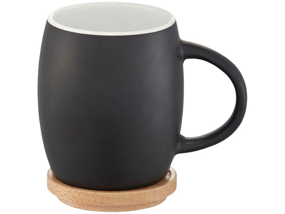Керамическая чашка Hearth с деревянной крышкой-костером, черный/белый