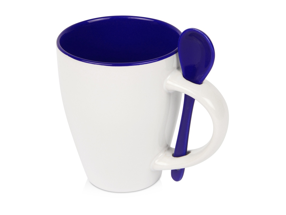 Стильная кружка на 320 мл с ложкой выполнены в контрастном сочетании цветов. Оригинальная форма ручки кружки позволяет крепить в ней ложку. Замечательный подарок для коллег по работе.