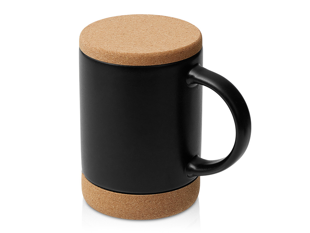 Кружка 450 мл с пробковым дном с крышкой Корк & Бон, черный