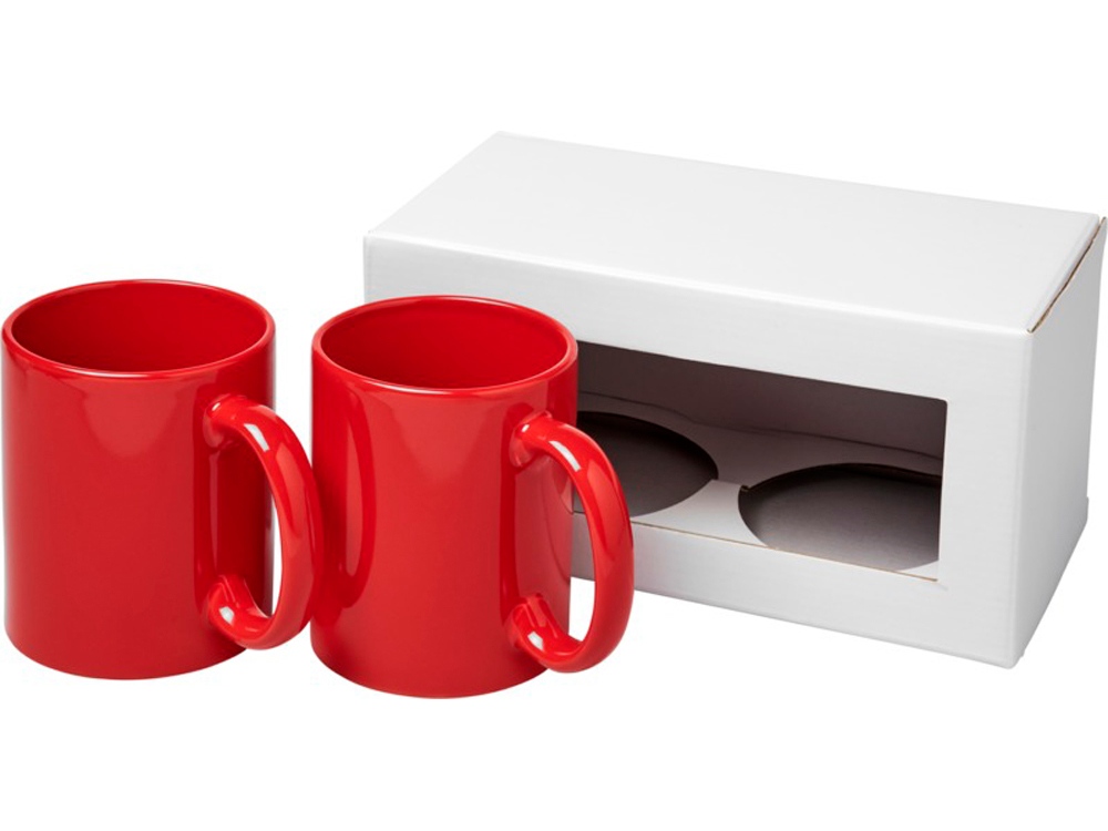 Набор из двух керамических кружек объемом 330 мл. Упакован в белой коробке с окошком. Керамика.