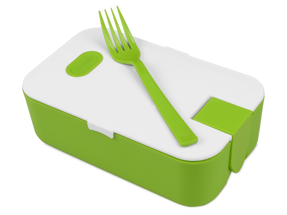 Ланч-бокс Neo можно брать с собой на работу, в школу, университет и командировки. Внутри прочной пластиковой емкости находятся снимаемая перегородка и вилка. Крышка с клапаном препятствует выпадению продуктов из бокса. Чтобы облегчить открытие контейнера, сначала выпустите воздух из него, потянув за силиконовый клапан на крышке. Деталь для фиксации крышки контейнера выполняет дополнительную функцию подставки для телефона, что особенно понравится тем, кто привык смотреть видео или читать книги во время перекуса. Ланч-бокс Neo можно разогревать в микроволновой печи, предварительно сняв крышку контейнера. Также разрешается использовать в посудомоечной машине и морозильной камере.