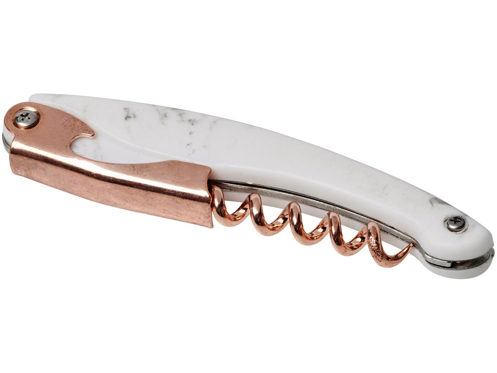 Нож официантки Mila с мраморным рисунком. Содержит штопор, ключ для открывания бутылок и нож для резки фольги. ABS пластик, нержавеющая сталь 430. 0,052.