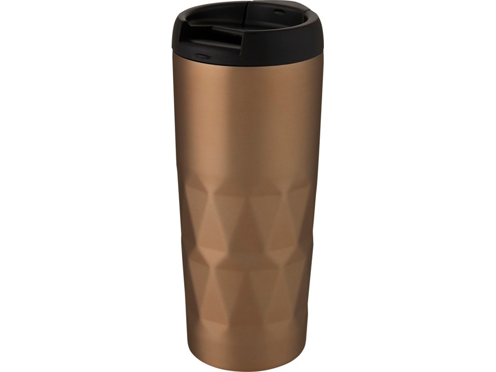 Медная кружка с двойными стенками, вакуумной изоляцией и навинчивающейся крышкой с защитой от проливания со сложным геометрическим дизайном. Благодаря изоляции и нержавеющей стали 18/8 напитки несколько часов остаются горячими или холодными. Без содержания BPA, протестировано и одобрено согласно немецкому законодательству о безопасности пищевых продуктов (LFGB), проверено на содержание фталатов согласно нормам REACH. Объем 450 мл. Рекомендуется мыть вручную. В подарочной коробке из переработанного картона.