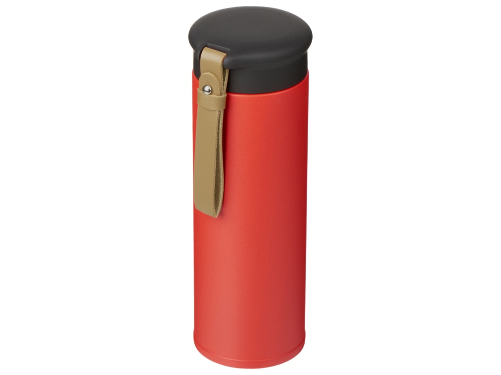 Термос герметично завинчивается на крышку, оснащенную съемным ремешком из качественной ПУ кожи. Крышка имеет прорезиненное покрытие, что создает интересное сочетание текстур в рамках одной модели. Корпус имеет элегантную рельефную поверхность с антискользящим эффектом.