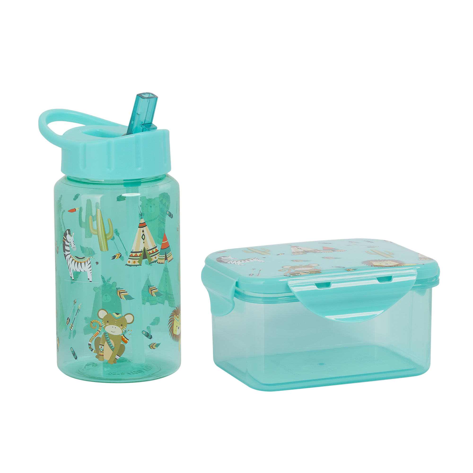 Набор с детским принтом (ланч-бокс, бутылка 0,45 л), зеленый