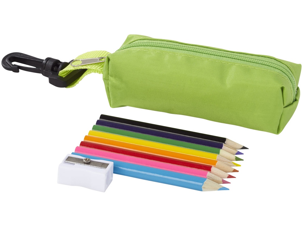 Набор карандашей 8 единиц. 8 цветных карандашей и точилка в чехле из полиэстера на молнии с клипом. Полиэстер.