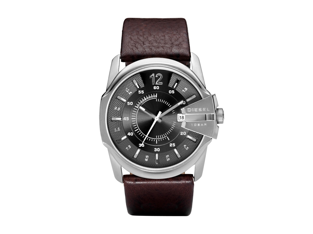 Цвет : корпус- стальной, циферблат- темно-серый, крепление- коричневый