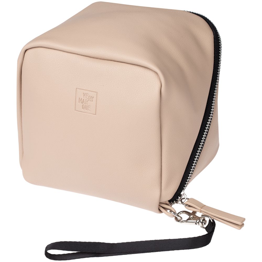 Модель : Дорожная косметичка Cubo, бежевая с логотипом