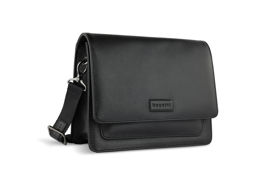 Сумка через плечо женская BUGATTI ЭЛЬЗА | ELSA, чёрная, воловья кожа/полиэстер, 25х8,5х20 см
