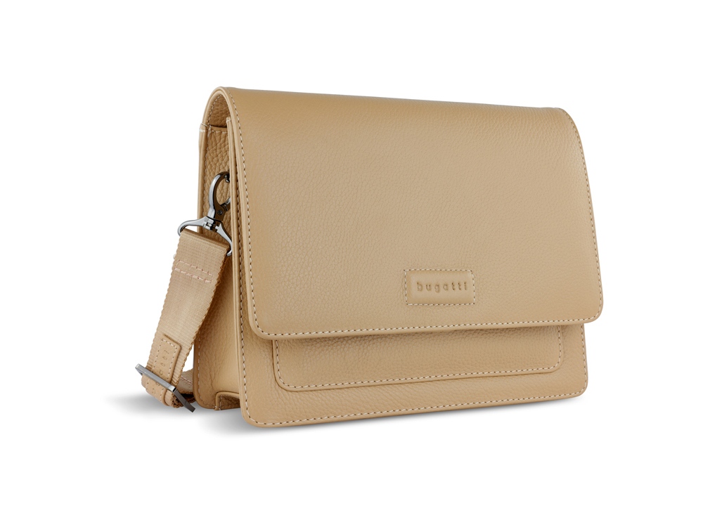 Сумка через плечо женская BUGATTI ЭЛЬЗА | ELSA, песочного цвета, воловья кожа/полиэстер, 25х8,5х20 см