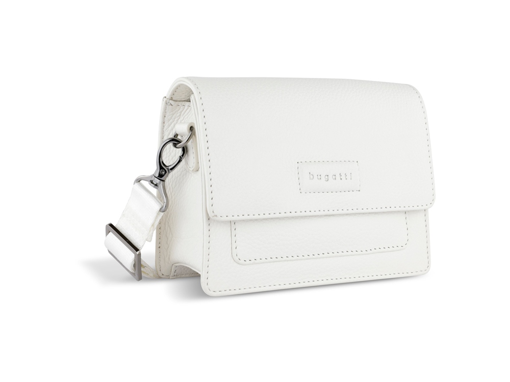 Сумка через плечо женская BUGATTI ЭЛЬЗА | ELSA, белая, воловья кожа/полиэстер, 18,5х8,5х14,5 см