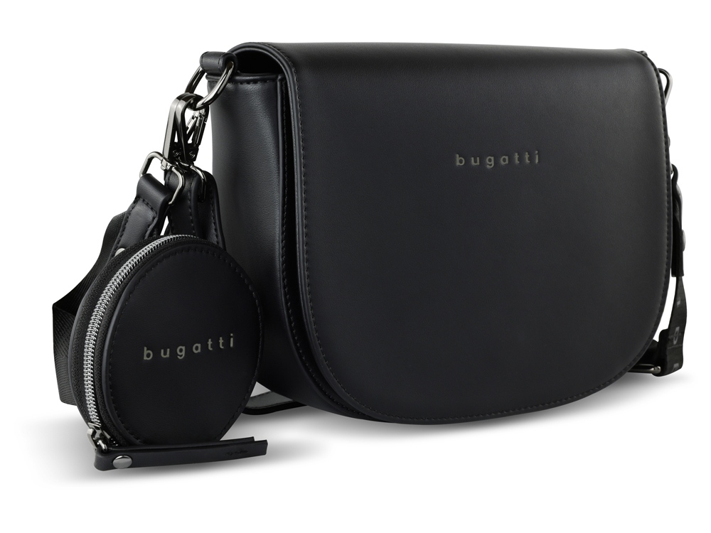 Сумка наплечная женская BUGATTI АЛМАТА | ALMATA, с кошельком, чёрная, полиуретан, 27х6х18,5 см