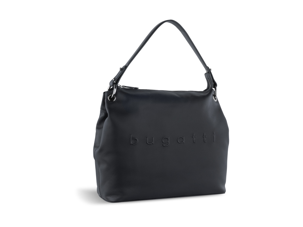 Сумка наплечная женская BUGATTI Daphne, чёрный цвет, воловья кожа/полиэстер, 34х13х30 см