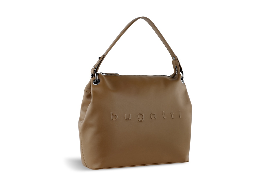 Сумка наплечная женская BUGATTI Daphne, коньячный цвет, воловья кожа/полиэстер, 34х13х30 см