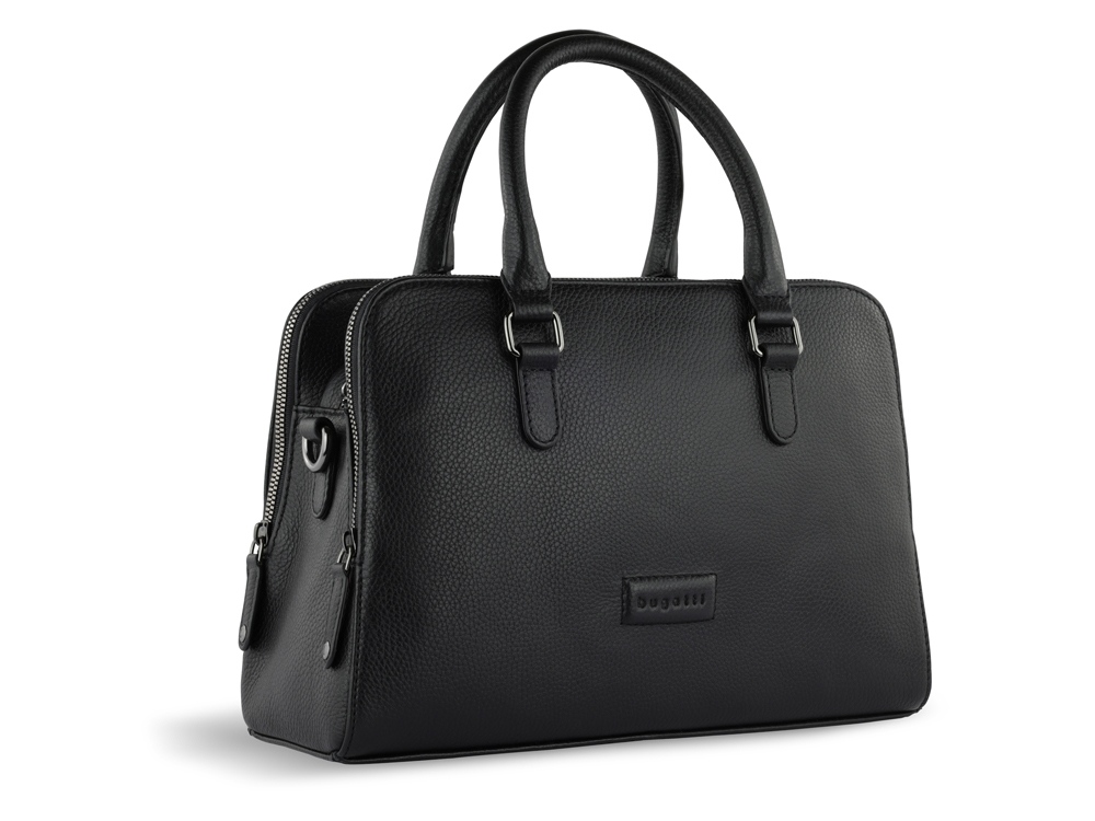 Сумка женская BUGATTI ЭЛЬЗА | ELSA, чёрная, воловья кожа/полиэстер, 32х13х22 см