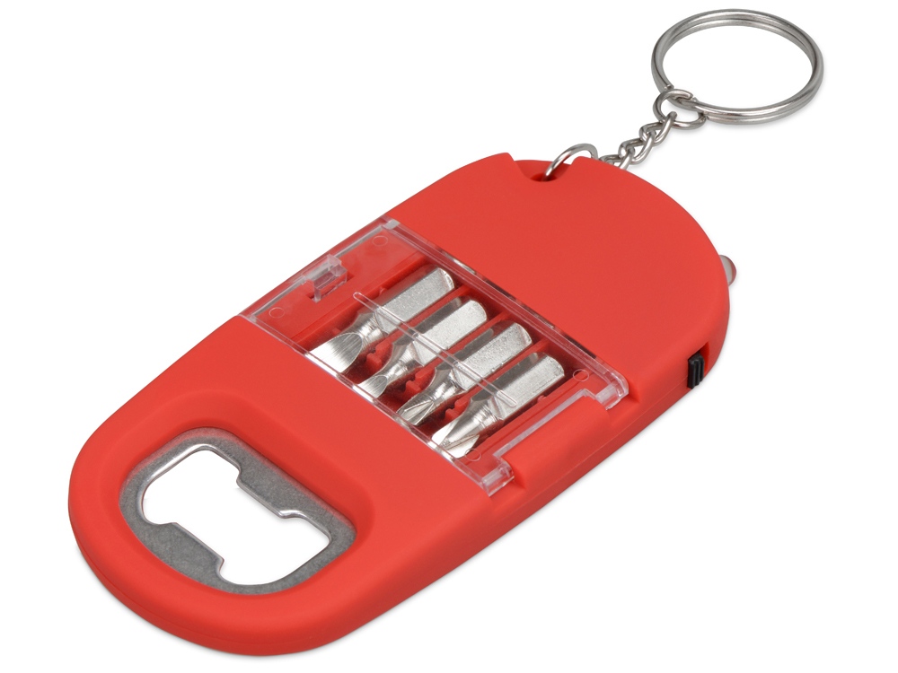Брелок-открывалка с отвертками и фонариком Uni, софт-тач, красный