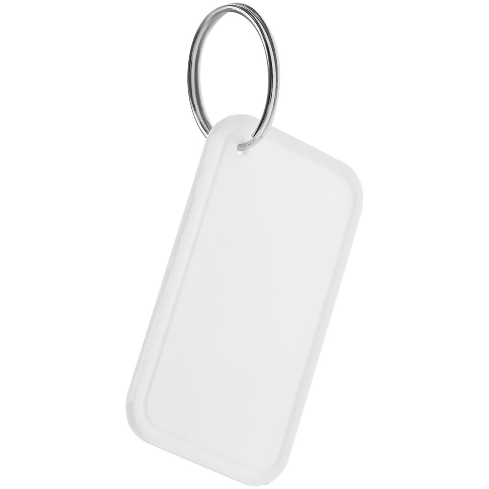 Лаконичный брелок из полипропилена с металлическим кольцом.