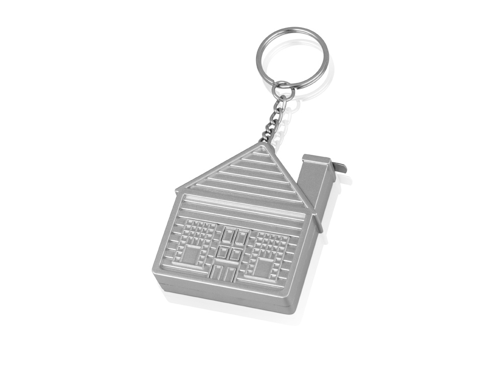 Брелок в форме домика подчеркнет специализацию строителей, риелторов и прочих работников жилищной сферы. Брелок оснащен рулеткой 1 м., с помощью которой вы в любое время сможете произвести нужные измерения.