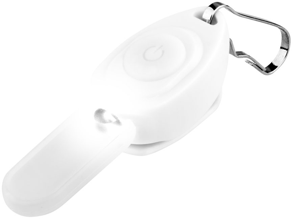 Брелок-фонарик для молнии. Этот фонарик прекрасно крепится к собачке на молнии. Режимы мигания и постоянного света. Крепится с собачке на молнии при помощи карабина или клипа сзади. Батарейки в комплекте. Пластик.