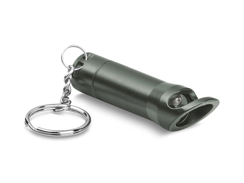 Металлический фонарь с 3 светодиодами, открывалкой и кольцом для ключей. Включает 3 батареи LR44. ø18 x 72 мм