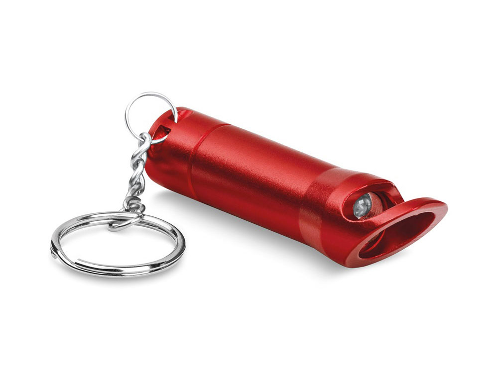 Металлический фонарь с 3 светодиодами, открывалкой и кольцом для ключей. Включает 3 батареи LR44. ø18 x 72 мм
