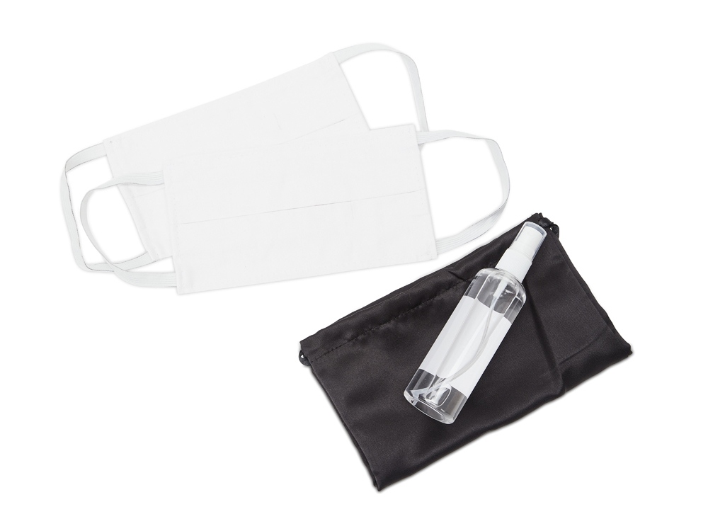 мешочек - матовый сатин, маска - 100% хлопок, антисептик - пластик
