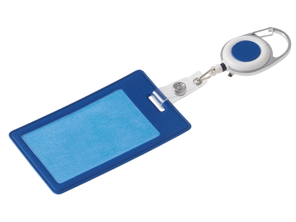 Бейдж с рулеткой-карабин Favor, синий