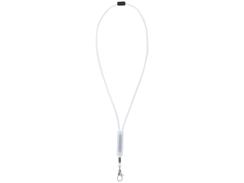 Шнурок Landa с регулируемой вставкой. Шнурок для бейджа или ключей. ПВХ вставка для нанесения. Фиксатор предотвращает удушье. Полиэстер. Тампопечать (1 цвет (белые изделия)) на данный товар осуществляется бесплатно. Оплачивается только настройка оборудования в размере 3600 рублей на весь тираж.