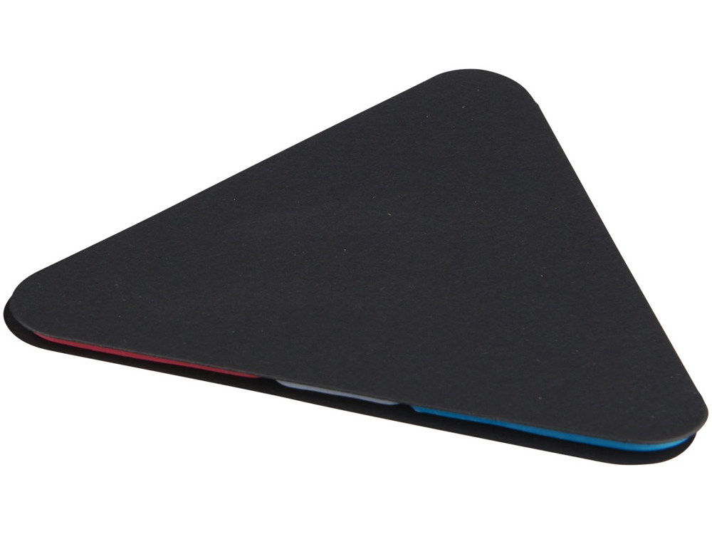 Треугольные стикеры. Набор треугольных стикеров: 4 блока стикеров, из которых 3 блока цветные, а 1 — белый. Картон. Тампопечать (1 цвет (цветные изделия)) на данный товар осуществляется бесплатно. Оплачивается только настройка оборудования в размере 3600 рублей на весь тираж.