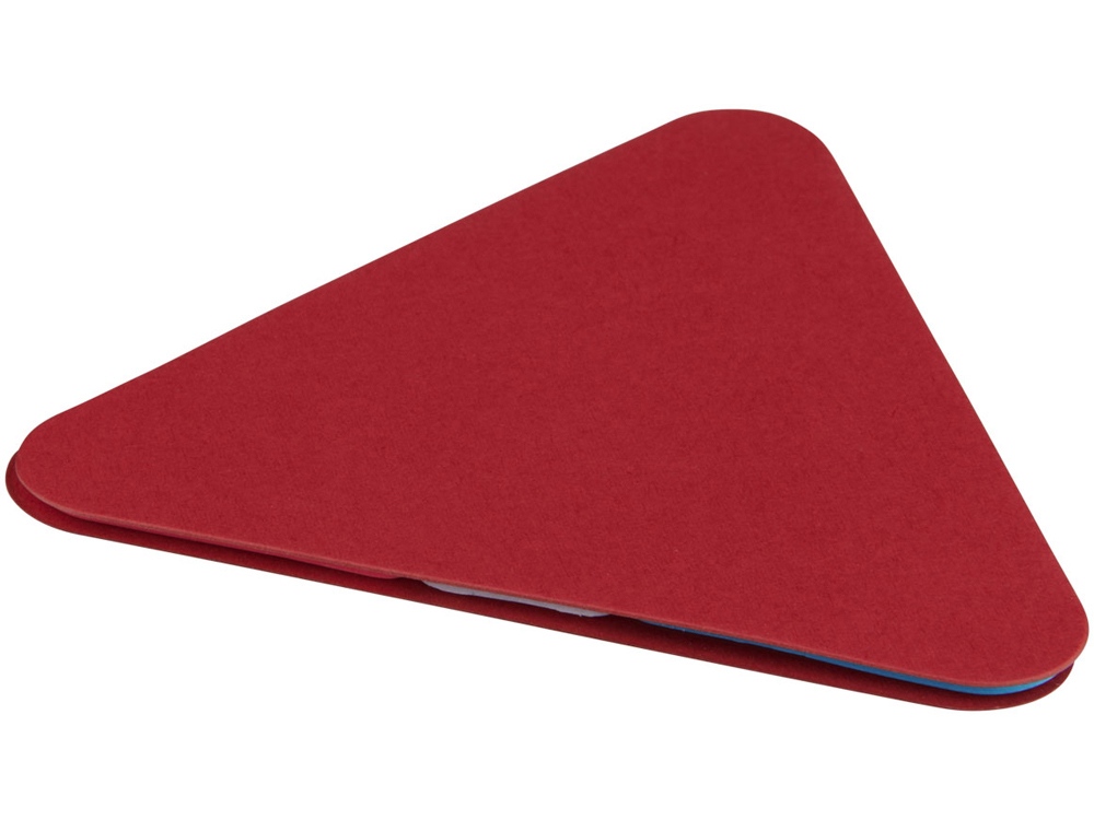 Треугольные стикеры. Набор треугольных стикеров: 4 блока стикеров, из которых 3 блока цветные, а 1 — белый. Картон. Тампопечать (1 цвет (цветные изделия)) на данный товар осуществляется бесплатно. Оплачивается только настройка оборудования в размере 3600 рублей на весь тираж.