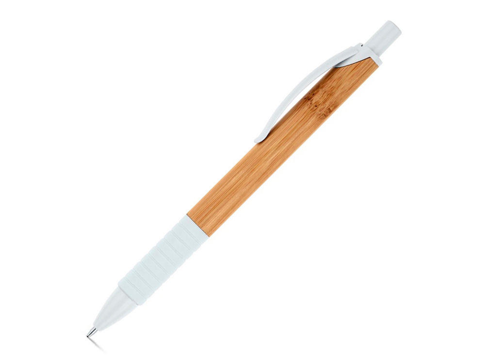 Шариковая ручка из бамбука, с противоскользящим покрытием, пластмассовым зажимом и наконечником.ø11 x 142 мм