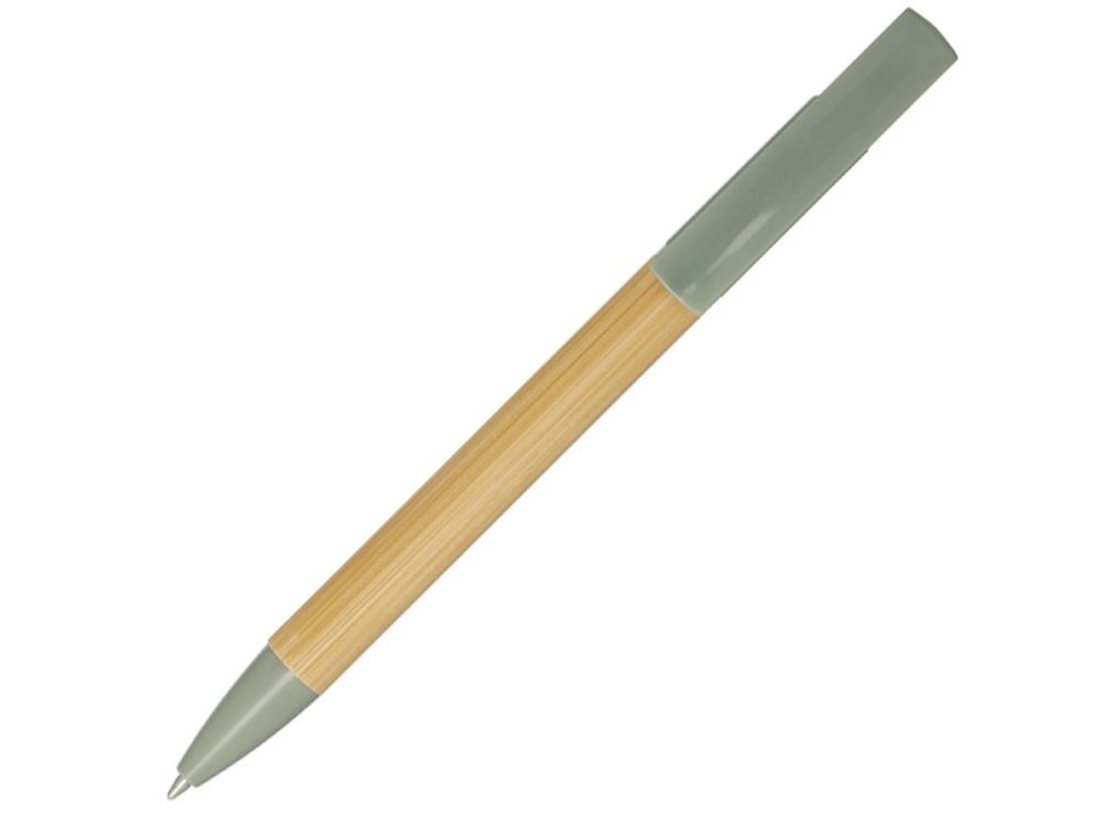 Бамбуковая шариковая ручка, которая также может служить подставкой для телефона. Кнопка и среднее кольцо изготовлены из переработанного пластика, наконечник — из латуни, а корпус — из бамбука, полученного из ответственных источников. Цвет чернил: синий. Длина непрерывной линии: 1000 метров. Размер пера: 1,0 мм. FSC certified bamboo. FSC Mix Credit N5 CU-COC-877277.