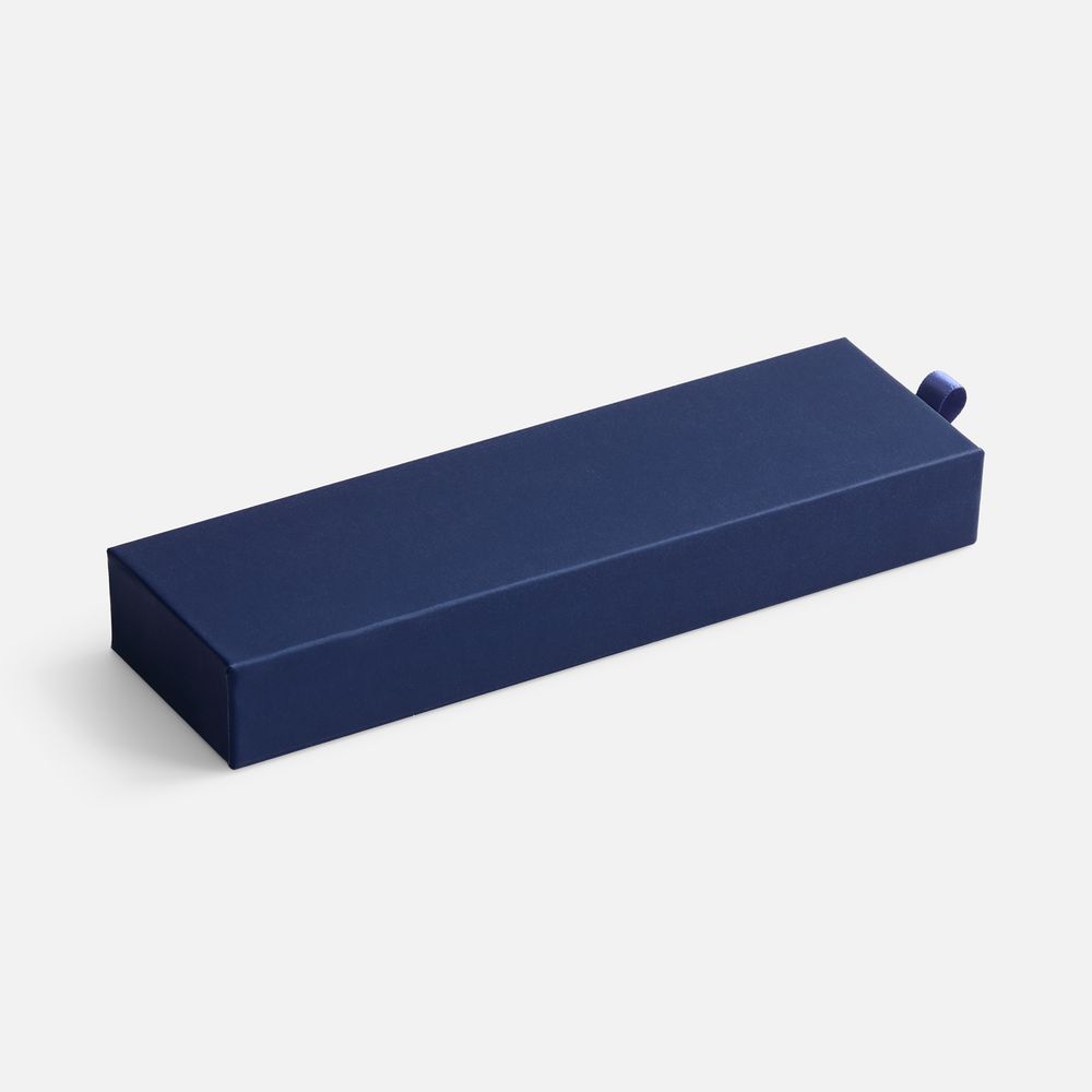 Картонный футляр с покрытием софт-тач с флокированным ложементом для одной ручки.
