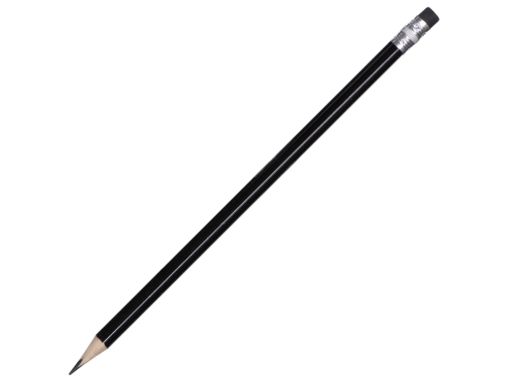 Трехгранный чернографитовый карандаш с ластиком будет очень полезным и недорогим подарком. Карандаш заточен.