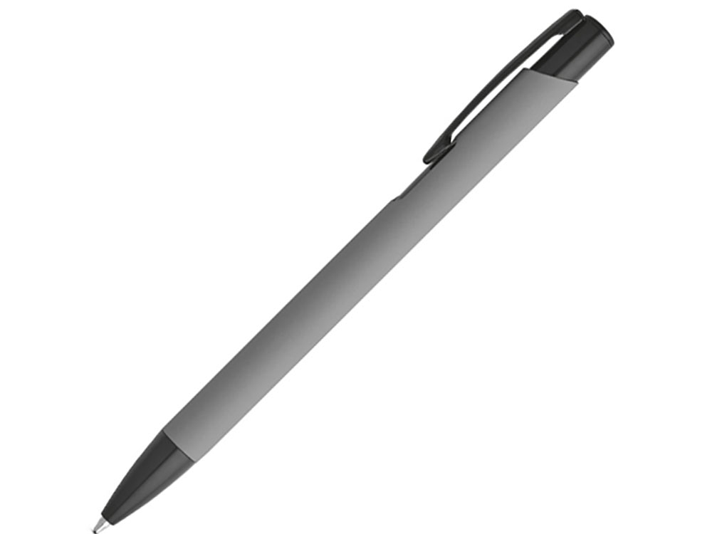 POPPINS. Алюминиевая шариковая ручка, Серый. Алюминиевая шариковая ручка с прорезиненным корпусом. Вид нанесения, рекомендуемый поставщиком: гравировка, УФ-печать