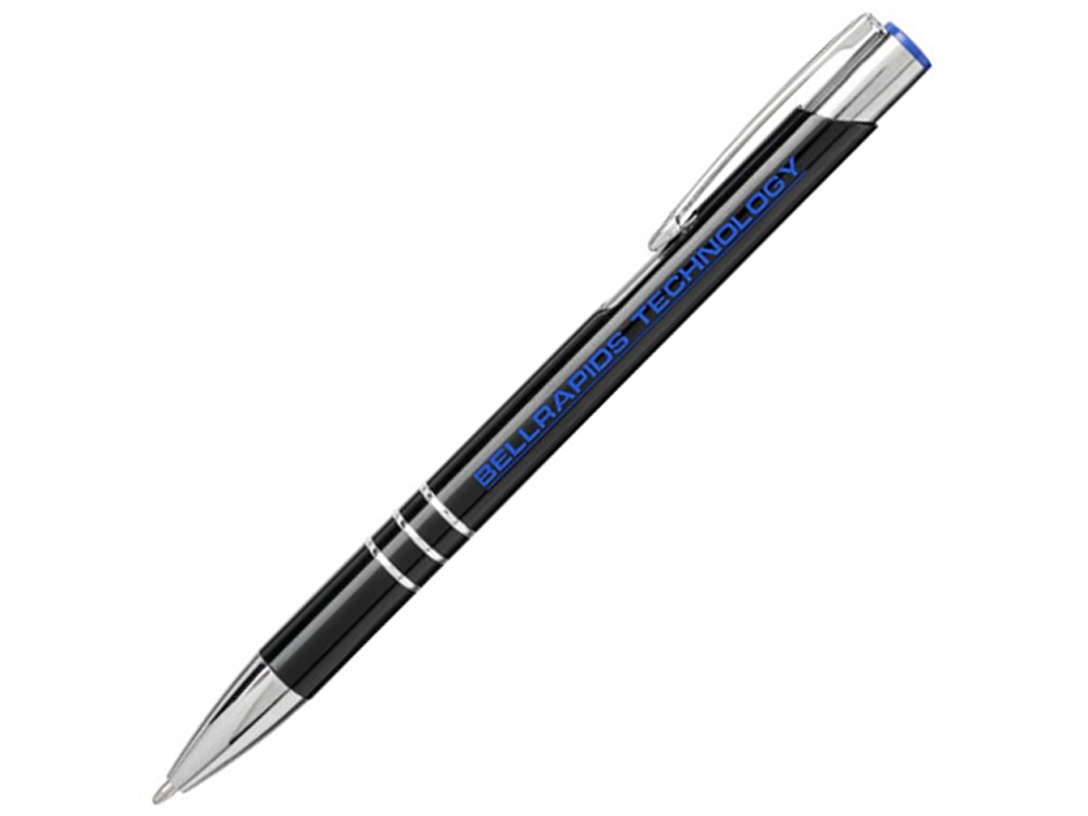 Ручка металлическая шариковая Moneta с цветной кнопкой, черный/синий