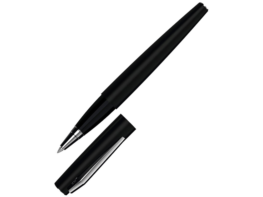 Металлическая ручка роллер с матовым лакированным покрытием. Металлический клип, наконечник и колпачок с глянцевой хромированной отделкой.