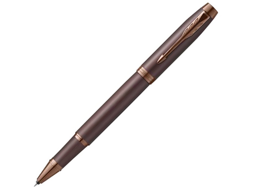 Ручка-роллер IM Core со съемным колпачком. Корпус и колпачок из латуни, покрыт лаком коричневого (шоколадного) цвета, превосходно сочетается с хромированными декоративными элементами. Зона захвата выполнена из глянцевого черного пластика. Выгравированный логотип PARKER на декоративном хромированном кольце.
