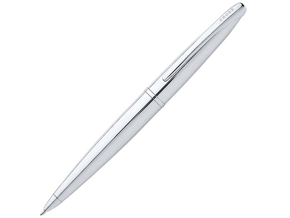 Шариковая ручка Cross ATX Brushed Chrome с гравировкой, полированным покрытием черного цвета и поворотным механизмом.