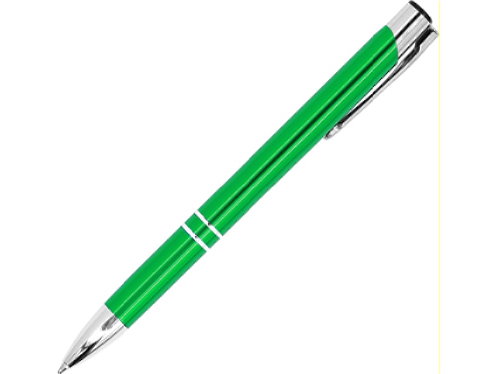 Шариковая ручка с алюминиевым корпусом и кнопкой с анодированным покрытием. Синие чернила