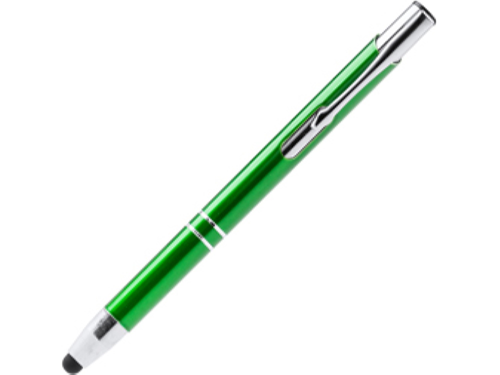 Шариковая ручка с алюминиевым корпусом и кнопкой с анодированным покрытием. Сенсорный стилус. Синие чернила.