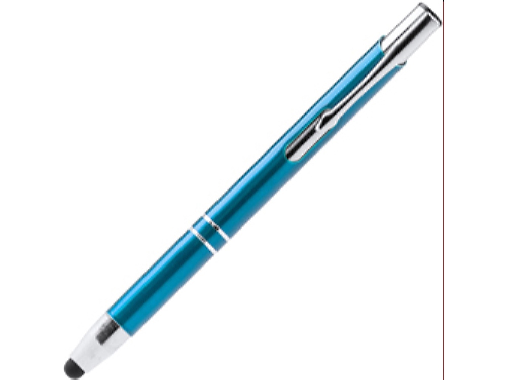 Шариковая ручка с алюминиевым корпусом и кнопкой с анодированным покрытием. Сенсорный стилус. Синие чернила.