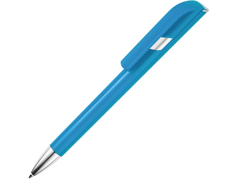 Пластиковая ручка с цветным корпусом и серебристым носиком привлечет внимание своим необычным дизайном: при нажатии на кнопку двигается только часть клипа, а вторая – остается на месте. Из шести расцветок можно выбрать ту, что наилучшим образом подойдет к вашим фирменным цветам.